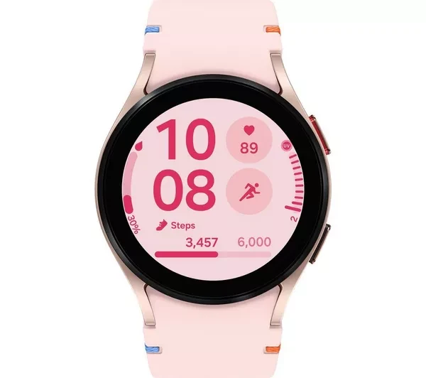 Galaxy Watch FE is sleek, lightweight and available in three stylish colors: Black, Pink Gold and Silver with new stitch bands to match.